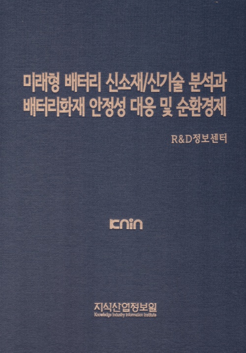 이에 본원 R&D정보센터에서는 리튬이온배터리 산업의 성장과 안전한 생태계 구축에 도움이 되고자 「미래형 배터리 신소재/신기술 분석과 배터리화재 안정성 대응 및 순환경제」을 발간하였다. 1편에서는 차세대 배터리의 고효율 신소재/신기술 개발동향과 사용후 배터리의 순환경제 전략을 다루었고, 2편에서는 배터리화재 위험성분석 연구와 안전성 확보를 위한 대응기술을 다루었다. 본서가 학계・연구기관 및 관련 산업분야 종사자 여러분들에게 다소나마 유익한 정보자료로 활용되기를 바라는 바입니다.