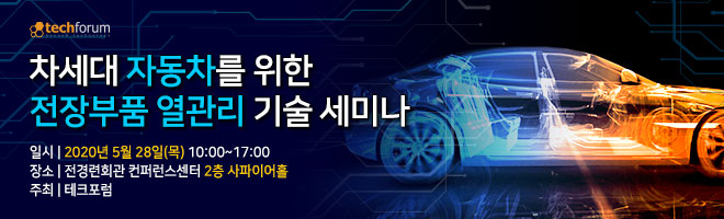 최신 기술 및 성장산업 관련 정보와 소통의 장을 제공하는 테크포럼은 2020년 5월 28일(목) 오전 10시에 전경련회관 컨퍼런스센터 2층 사파이어홀에서 '차세대 자동차를 위한 전장부품 열관리 기술 세미나' 를 개최합니다.