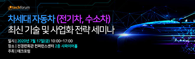 최신 기술 및 성장산업 관련 정보와 소통의 장을 제공하는 테크포럼은 2020년 7월 17일(금) 오전 10시에 전경련회관 컨퍼런스센터 2층 사파이어홀에서 '차세대 자동차 (전기차, 수소차) 최신 기술 및 사업화 전략 세미나' 를 개최합니다.