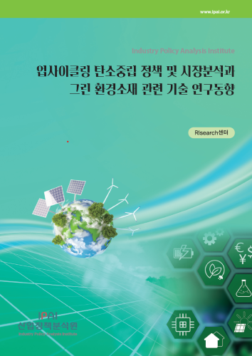 이에 본원 Rlsearch센터에서는 각 연구기관과 국내·외 민간연구소의 자료‧데이터 및 정부의 정책 자료를 분석 정리하여 「업사이클링 탄소중립 정책 및 시장분석과 그린 환경소재 관련 기술 연구동향」을 발간하게 되었습니다. 본서 1편에서는 탄소중립 정책 및 시장분석 등을 정리하였으며, 2편에서는 그린 환경소재 관련 기술 연구동향 등을 수록함으로써 이와 관련된 업체 분들에게 다소나마 유용한 정보자료로 활용되기를 바라는 바입니다.