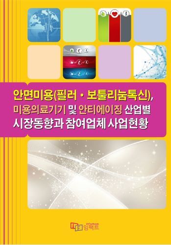 이에 안티에이징을 기반으로 하는 필러, 보톨리눔 톡신 등 관련 산업에 대한 이해를 돕고자 올해에도 국내외 시장 및 관련업체 추진사례 등을 조망, 안티에이징 산업의 이해관계자 또는 이 분야의 진출을 고려하고 계신 분들에게 도움이 되기를 바라는 마음으로 본서를 발행한다.